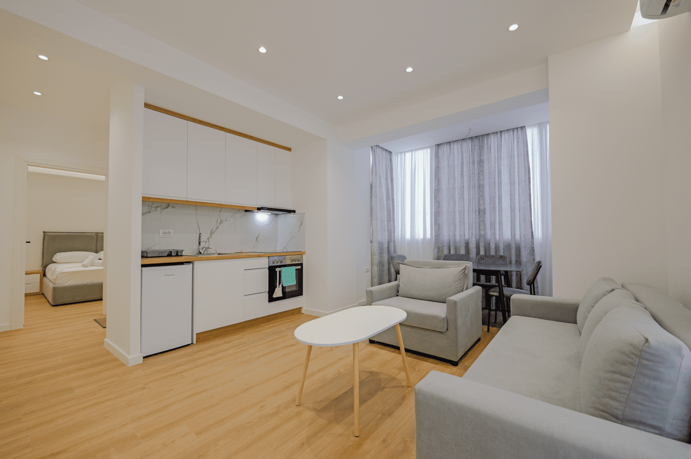 Nestled in the picturesque coastal town of Sarandë, Rubi Apartments offers a serene retreat just steps away from the sparkling Adriatic Sea. Our journey began with a vision to create a haven of comfort and relaxation for our guests, where every detail is carefully curated to ensure an unforgettable stay. Conveniently located mere minutes from the vibrant Saranda City Beach and the renowned Sarande Main Beach, Rubi Apartments welcomes you with open arms. As you step into our air-conditioned sanctuary, you'll find a seamless blend of modern amenities and traditional charm. Our story unfolds within the walls of our cozy apartment, offering a harmonious fusion of elegance and functionality. Adorned with a private balcony boasting breathtaking sea views, each corner of our space is designed to evoke a sense of tranquility and bliss.